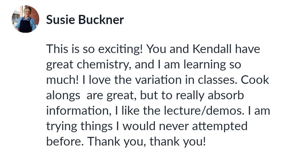 Okay, Perfect's online classes have become an absolute blessing during lockdown, but it's the lifetime of mastering the art of recipe-free cooking I am most excited about. With the Cordon Bleu-trained Chefs' focus on the principles of foods and flavors such as mains/compliments/contrasts and the chemistry of fat/acid/salt/aromatics, I know my home cooking will be elevated to levels I haven't even imagined yet. One day I'm sure to step food in the famous Provençal summer home and kitchen of Julia Child where the physical school resides, but for now, I hope to learn as much as possible through their online programs. LOVING IT!